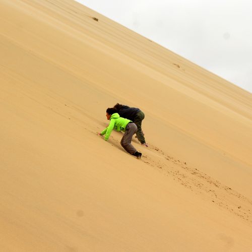 Le dune di Sossusvlei, altissime e rosso fuoco, sono state per lei una sfida e un gioco allo stesso tempo. Salire anche solo una parte di quelle dune le ha dato la sensazione di diventare parte del paesaggio.